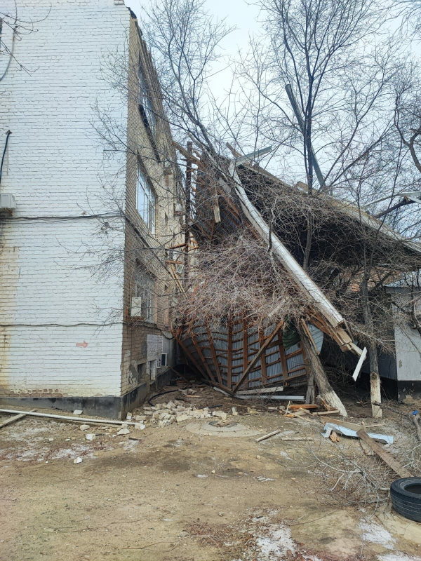 Но ветер усилился в ночь на воскресенье. А утром атыраусцы уже подсчитывали убытки. В шесть утра рухнула крыша городской поликлиники №1. Очевидец Борис рассказывает, как был на смене в это время и видел, как «тихо крыша едет, что называется, не спеша», со старого здания поликлиники. Кровля упала на рядом расположенные частные дома. К счастью, и здесь никто не пострадал.