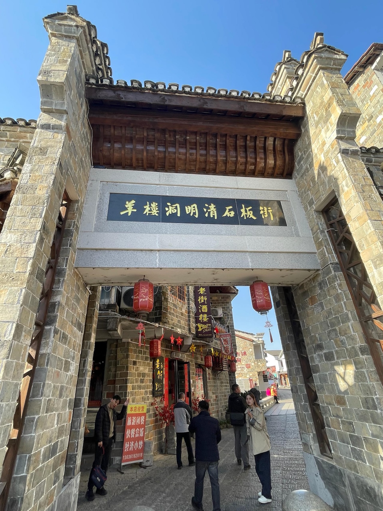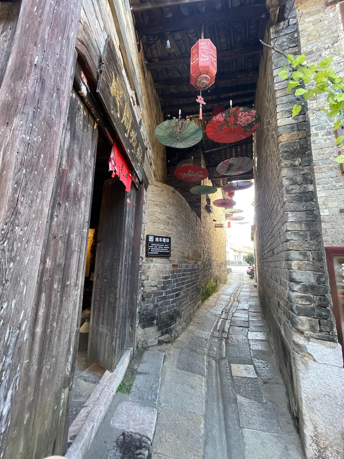 Главная улица древнего посёлка – 4-метровый каменный тракт длиной 2200 метров, выложенный плитами времен Мин и Цин, с десятками боковых переулков. По этим камням веками катились Ji Gong Che – специальные чайные повозки, оставившие в камне глубокие борозды, хорошо видимые и сегодня.