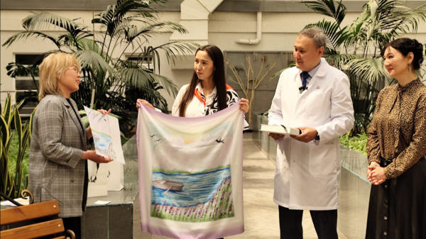 - У казахов издревле принято совершать добрые дела, помогать людям, попавшим в беду, протягивать руку помощи тем, кто нуждается в поддержке. Наш президент Касым-Жомарт Токаев неустанно отмечает деятельность волонтёров, добровольцем может стать любой, это легко и просто. Добрые поступки, сделанные от чистого сердца, делают счастливыми и получателя, и того, кто их совершил. Я безгранично благодарна женщинам, участвовавшим в мастер-классе. Их работы восхитили весь наш коллектив. Пусть платки, украшенные вашими рисунками, радуют вас и ваших детей! – отметила Жамиля Есмурзаева.