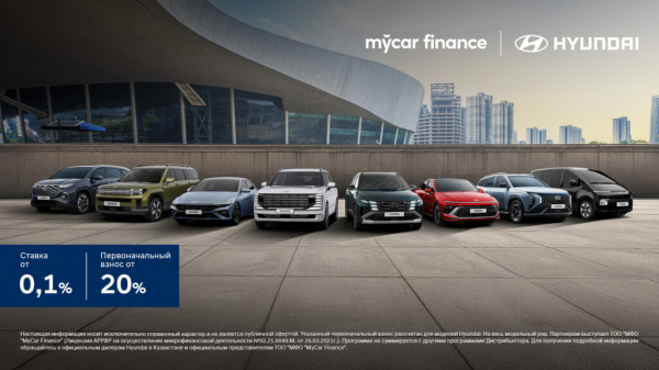 Микрофинансовая компания Mycar Finance объявила о запуске специального предложения для юридических лиц: автокредит на новые автомобили Hyundai с минимальной ставкой от 0,1% годовых и первоначальным взносом от 20%. Программа охватывает весь модельный ряд бренда и доступна на срок до 5 лет. Hyundai является лидером продаж в Казахстане третий год подряд. Высокий и стабильный спрос обусловлен оптимальным соотношением цены, надежности и технических характеристик.