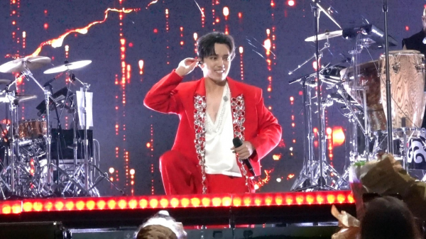 20-тысячная площадка сияла буйством красок атрибутики многочисленных фанклубов. Флаги, значки и костюмы поражали глаз разнообразием и сочетали в себе мотивы и символы стран, из которых приехали фанаты, включая родину вокалиста Казахстан. Наэлектризованная атмосфера, царившая внутри арены, в паузах между номерами то взрывалась громом бурных аплодисментов и восторженных криков, то разряжалась многотысячным хором, затягивающим знаменитое испанское «Оле, оле, оле...». А если вы бывали на футбольных матчах, то наверняка сможете представить себе энергетику, исходившую от живых человеческих волн, прокатывавшихся из края в край по всей арене под скандирование имени Димаша.
